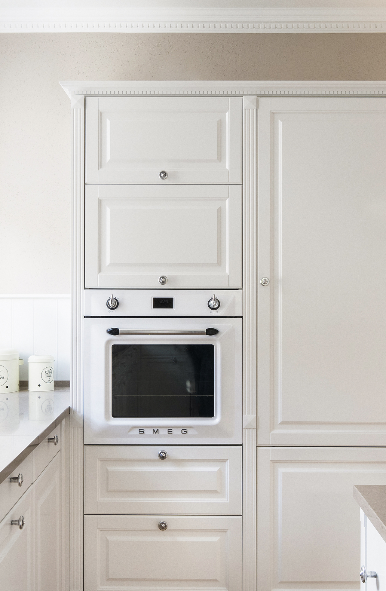 Køkkenet var allerede installeret, da Mette og hendes mand flyttede ind i deres hjem. Det var et Antique Lifestyle-køkken fra Sønderborg Køkkenet – et køkken, der var blevet passet med kærlighed og derfor sagtens kunne leve videre i den indretning, som den nye familie planlagde for hjemmet.